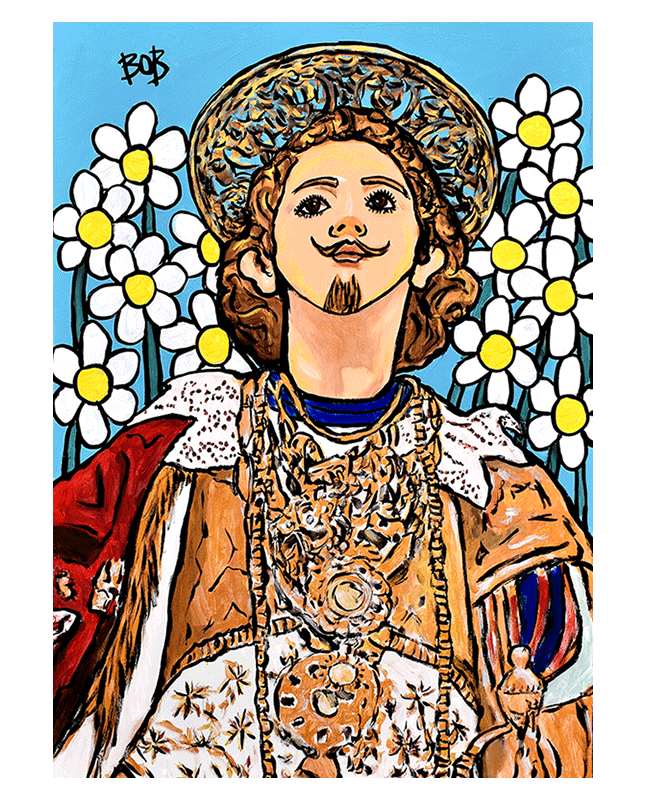 “Sant’Efisio Superstar” è un’opera originale che reinterpreta in chiave contemporanea una delle figure più iconiche della tradizione sarda.